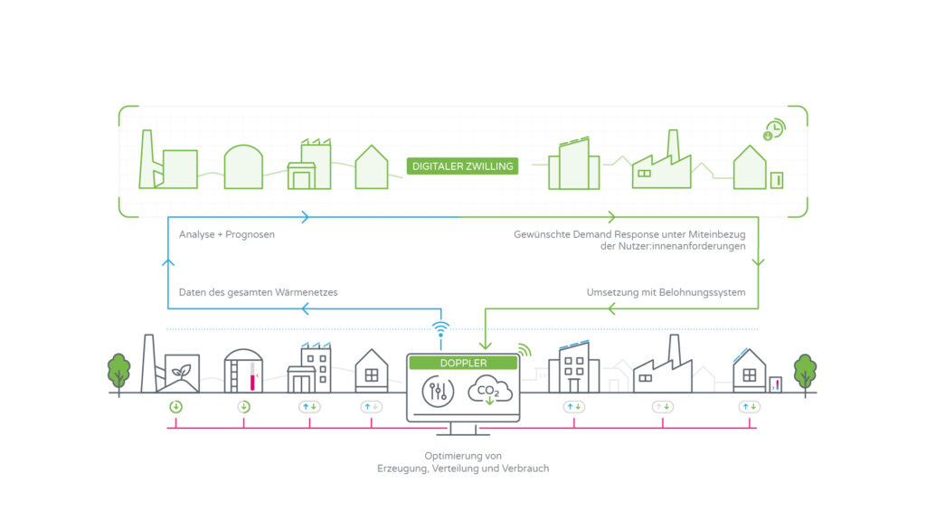 DOPPLER zeigt, wie Digitalisierung, Echtzeitsteuerung und soziales Nutzerverhalten miteinander kombiniert werden können, um Fernwärme fit für die 4. Generation zu machen.
